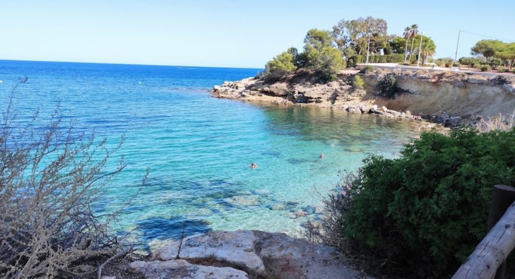 Al ser una cala que se encuentra más apartada de la zona principal de playas, incluso en verano es de las menos transitadas y seguro que encontrarás sitio. Esta cala tiene dos ares principales: una con arena que suele estar lleno de gente y otra con algas secas (no tiene arena y tampoco huele mal), con lo que tendrás un colchón muy blandito.